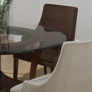 Product Description : : 888-440KD Features: -Set of two arm chair.-Chestnut velvet microfiber upholstered seat.-Modern and curved seat back with swoop down subtle arms.-Clean and tapered legs.-Traditional dining height.-Coordinates with conrad glass top table.-Note: A minimum of 2 chairs is required and in multiples of 2. Construction: -Constructed of Asian hardwood and oak veneer. Color/Finish: -Warm cherry brown finish. Assembly Instructions: -Assembly required. Warranty: -Manufacturer provides one year warranty.