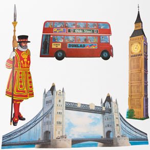 Product Description : Celebrate with British Style! The party doesn't start until the UK is represented! Celebrate England with Union Jack decorations. Four cutouts per package. Tower Bridge, Big Ben, red double decker bus and palace guard cutouts. Cutouts are approximately 16" long. Made of cardstock. Printed on two sides. Complete your British party or event with Union Jack flag decorations. The UK decorations are a great decorative addition to your British theme event. Part of Decorations > Cutouts
