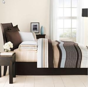 Product Description : : Update your bedroom Brown & Tan Stripe Bed in a Bag. You will love this bedding set whether you are sleeping, reading or lounging in your room. The set includes: 1- FULL Size Comforter, 1- Flat Sheet, 1- Fitted Sheet, 2- Pillowcases, 2- Shams & 1- Bedskirt.