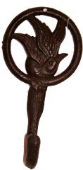 Product Description : Add dimension to your home decor with this ornamental iron hook featuring an exotic long-tailed bird. It is 6.5" high by 3.5" wide and 2" deep and comes in Warm, Rich Brown and Antique White.