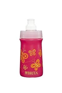 Product Description : Color: PinkAmazon.com Product Description : Recyclable, BPA free and Dishwasher safeBrita Bottle for KidsGetting busy, active kids to drink more water is easier than ever thanks to the Brita Bottle for Kids. Your kids can enjoy cleaner*, filtered tap water anywhere at school, on the sports field, traveling on a trip and more. Just fill with ordinary tap water and the in-bottle filter reduces chlorine, improving water taste and odor as they drink, so all your kids get is pure refreshing water. Get kids involved in making their own great tasting waterDiscovering the Wonders of Water85% of school-aged kids don't drink the recommended amount of water+. Brita Bottle for Kids helps kids learn to love water because it has a filter inside that gets kids involved in making their own great tasting water. So they're more likely to be drawn to water and all its wonders.Start young and make it fun. Use silly straws, make animal-shaped ice cubes and have kids imitate you as you drink. Hydrating regularly provides energy and vitality and is essential for a child's digestion, which makes the Brita Bottle for Kids a good idea. Child-friendly, easy-to-use squeezable bottleDrink cleaner*, refreshing water on the go - wherever kids goGreat tasting clean water can now go everywhere your kids go. The reusable bottle with a filter inside gives your kids a healthy and fun alternative to sugary drinks by turning tap water into better water without the cost and waste of bottled water. Conveniently designed, the bottle provides a pull-up drink nozzle for easy sipping. This child-friendly 13-ounce Brita Bottle for Kids features a comfortable, squeezable grip for smaller hands and a pink background with a butterfly pattern. Available in several other fun colors and patterns.DirectionsWash before using. To fill, unscrew cap and fill with cold tap water. Tighten cap firmly. Squeeze one full bottle of water through filter before first use to remove black carbon dust. Replace filter every 394 refills, 2 months or 40 gallons. (Filter replacement is essential for product to perform as represented.)Product FeaturesNSF certified to reduce chlorine taste and odor* Leaves a healthy level of fluoride** BPA-free and Dishwasher-safe (top shelf only) 13-ounce reusable bottle Easy-to-use squeezable bottle Recyclable bottle 1 filter saves up to 300 plastic bottles*** *Certified to reduce chlorine. *Substances reduced may not be in all users' water. *Compared to tap water.+Graubard, B & Kant, A. (2010). Contributors of water intake in US children and adolescents: associations with dietary and meal characteristics: National Health and Nutrition Examination Survey 2005-2006. American Society for Nutrition, 4.**Applies to fluoridated municipal tap water***Standard 16.9-ounce bottlesProduct Description : Getting busy, active kids to drink more water is easier than ever thanks to the Brita Bottle for Kids. Your kids can enjoy cleaner, filtered tap water anywhere at school, on the sports field, traveling on a trip and more. The filter sits inside this reusable bottle, filtering water as they drink. It removes impurities and makes ordinary tap water taste great without the cost and waste of bottled water. This child-friendly 13-ounce Brita Bottle for Kids features a comfortable, squeezable grip for smaller hands and a bright green background with a squares pattern. It